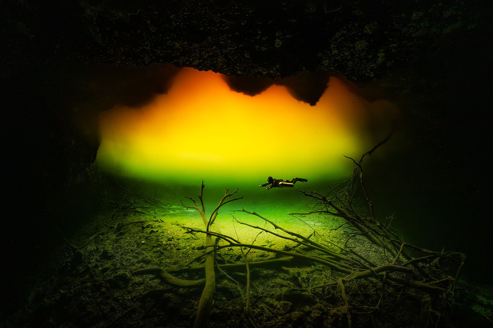 韩国摄影师Ruruka凭借《水下极光》(Underwater Aurora)获得PADI(Professional Association of Diving Instructors)新秀水下摄影师奖项。这张照片在墨西哥天然井的雨季拍摄,展现了绚丽的水下光影效果。
