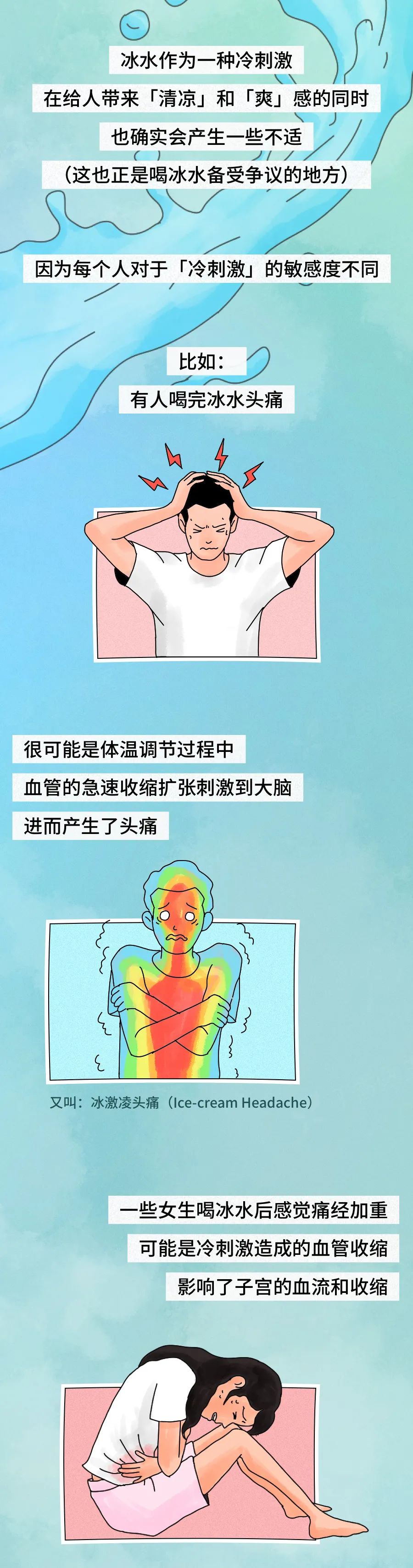 网络流传的"冰水致癌"等说法缺乏科学依据。人体具有自我调节体温的能力,冷水进入体内后会逐渐升温至接近体温。选择饮水温度时,应结合个人体质和具体情况,保持科学理性的态度。