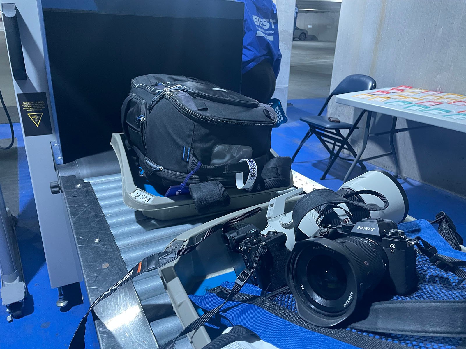 戴在比赛中使用两台索尼(Sony)相机(a9和a7),配备16-35mm、70-200mm和300mm三个镜头。比赛进行时,他主要使用长焦镜头拍摄球队进攻防守转换和观众反应。比赛结束前,则会换上广角镜头准备进入场内拍摄。
