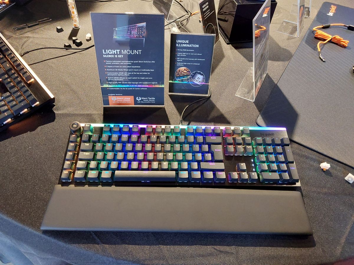 这两款键盘采用三层降噪设计,配备Be Quiet自主研发的静音机械轴体。经实地测试,键盘的敲击声音极其轻微,包括空格键在内的所有按键都保持出色的静音效果。键盘采用出厂预润滑的轴体和稳定器,有效降低按键晃动。用户可选择线性(橙轴)或触感(黑轴),同时支持热插拔兼容5针MX式轴体。