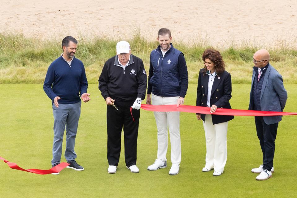 7月29号,美国总统特朗普在苏格兰参加特朗普国际高尔夫球场(Trump International Golf Links Aberdeen)开幕仪式。在与英国首相基尔·斯塔默(Keir Starmer)会面并与欧盟达成贸易协议后,特朗普为其在苏格兰东部高尔夫庄园的第二个球场揭幕。