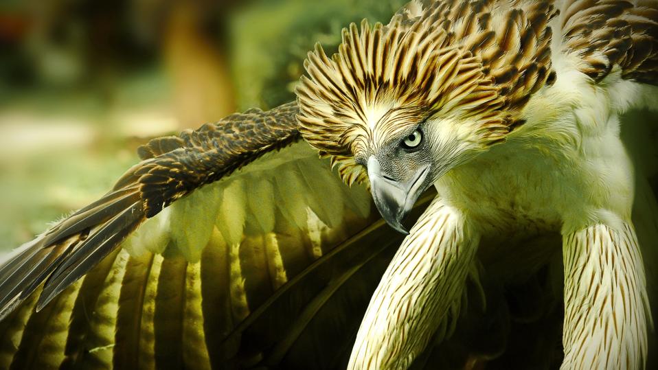根据国际自然保护联盟(IUCN)的分类,菲律宾鹰被列为极危物种,野外繁殖对数估计不到250对。2025年6月发表在《猛禽研究期刊》的研究显示,实际种群数量可能仅剩64对繁殖鸟。