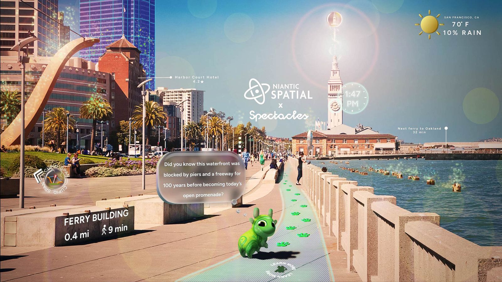 目前,这项导游服务仅限于Snap智能眼镜的演示阶段。尼安蒂克空间科技正在谨慎推进,确保不会重复《精灵宝可梦Go》曾导致的安全问题。正如该公司执行制片人艾丽西娅·贝瑞(Alicia Berry)所说:"这只是我们的第一步,让我们先把性格特征确定下来。"