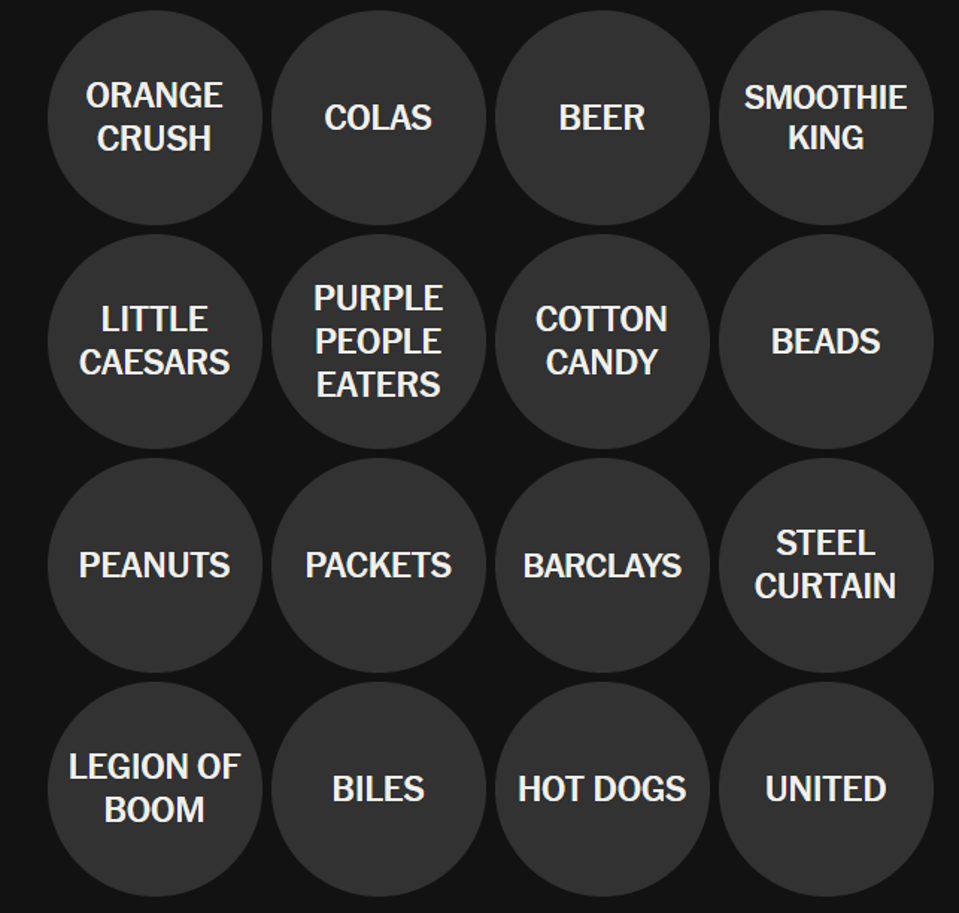 - 紫组:NFL球队名变体(倒数第二个字母改变)