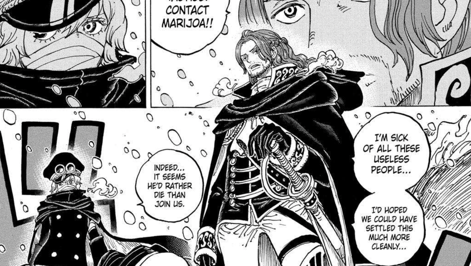 这场会面的场景设计颇具深意:画面中的人物身着斗篷,刻意隐藏标志性特征,如香克斯缺失的手臂和脸上的疤痕。随着夏姆洛克的登场,一个新的可能性浮出水面——与五老星会面的可能是夏姆洛克。这一推测得到支持,因为夏姆洛克曾提到香克斯最后一次造访玛丽乔亚(Mary Geoise)是在世界会议之前多年。