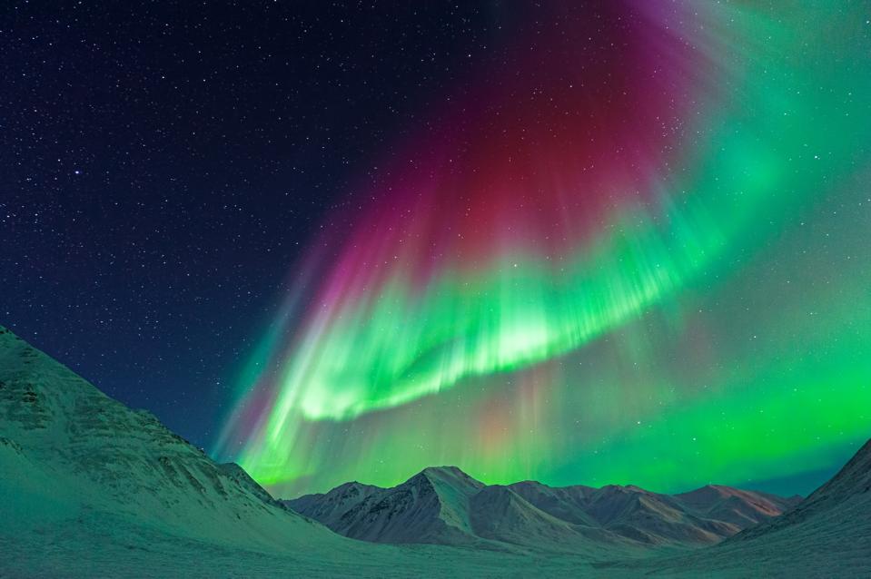 北极光是由太阳风引起的自然现象。带电粒子流从太阳发出后与地球磁场相互作用,部分粒子沿着磁力线螺旋运动到极地,与高空中的氧原子和氮原子发生碰撞。这些碰撞使气体分子激发,释放能量形成绚丽的光芒。