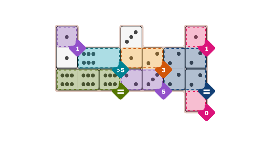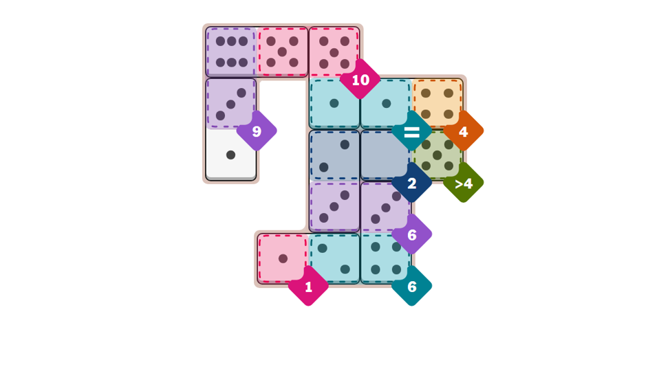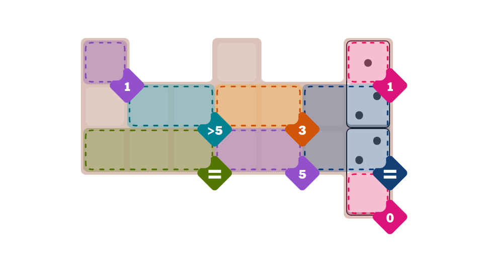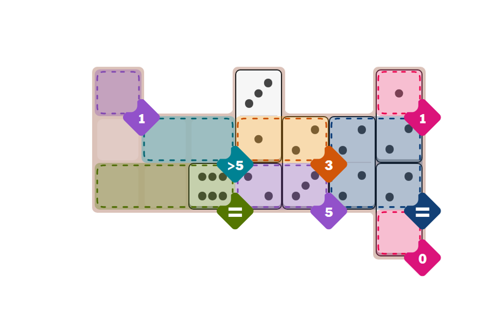 - 必须用完所有骨牌并满足每个区域的条件才能获胜
