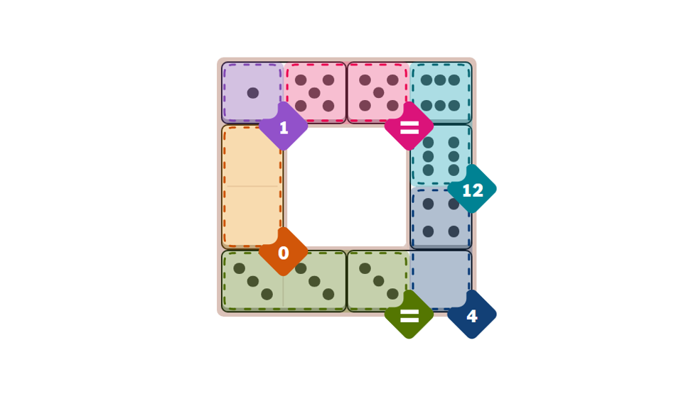 - 将0/1骨牌从粉色0区域放入深蓝色相等组