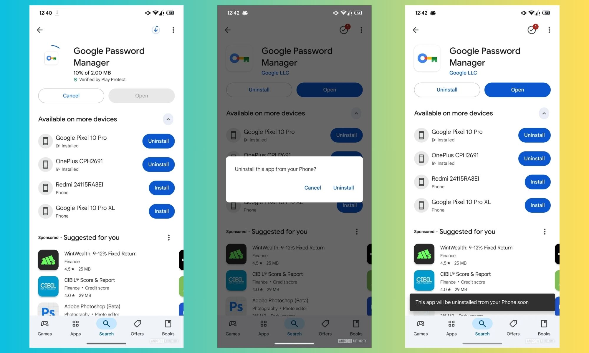 新的卸载快捷方式直接显示在应用详情页面。用户还可以通过"管理应用和设备 > 管理"路径,使用设备筛选功能查看并删除指定设备上的应用。目前谷歌尚未明确说明对离线设备的处理方式。