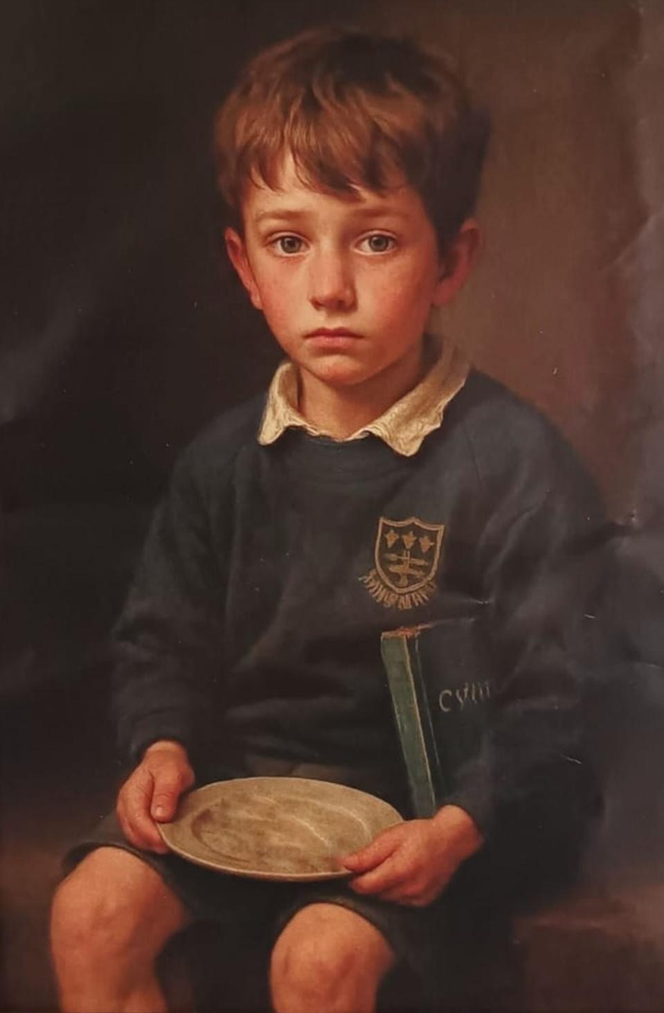 这幅题为《空盘子》(Empty Plate)的数字版画于10月29日被悬挂在博物馆当代艺术区。作品展示了一个身着校服的小男孩,他目光忧郁地直视前方,膝上放着一个空盘子。马罗解释说:"这个象征很简单,在威尔士仍有许多儿童忍受饥饿——任何地方的孩子都不应该缺少食物。"