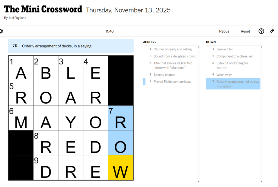 《纽约时报》(NYT)迷你填字游戏是大型填字游戏的小型版本,设计更加简洁易玩。该游戏原本免费,但从8月起已纳入付费墙内容。每期谜题通常包含10-20个线索,其中周六难度最高。