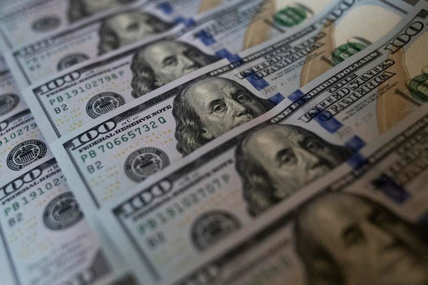 这张照片摄于2023年12月15日的阿根廷布宜诺斯艾利斯,展示了美国百元钞票。