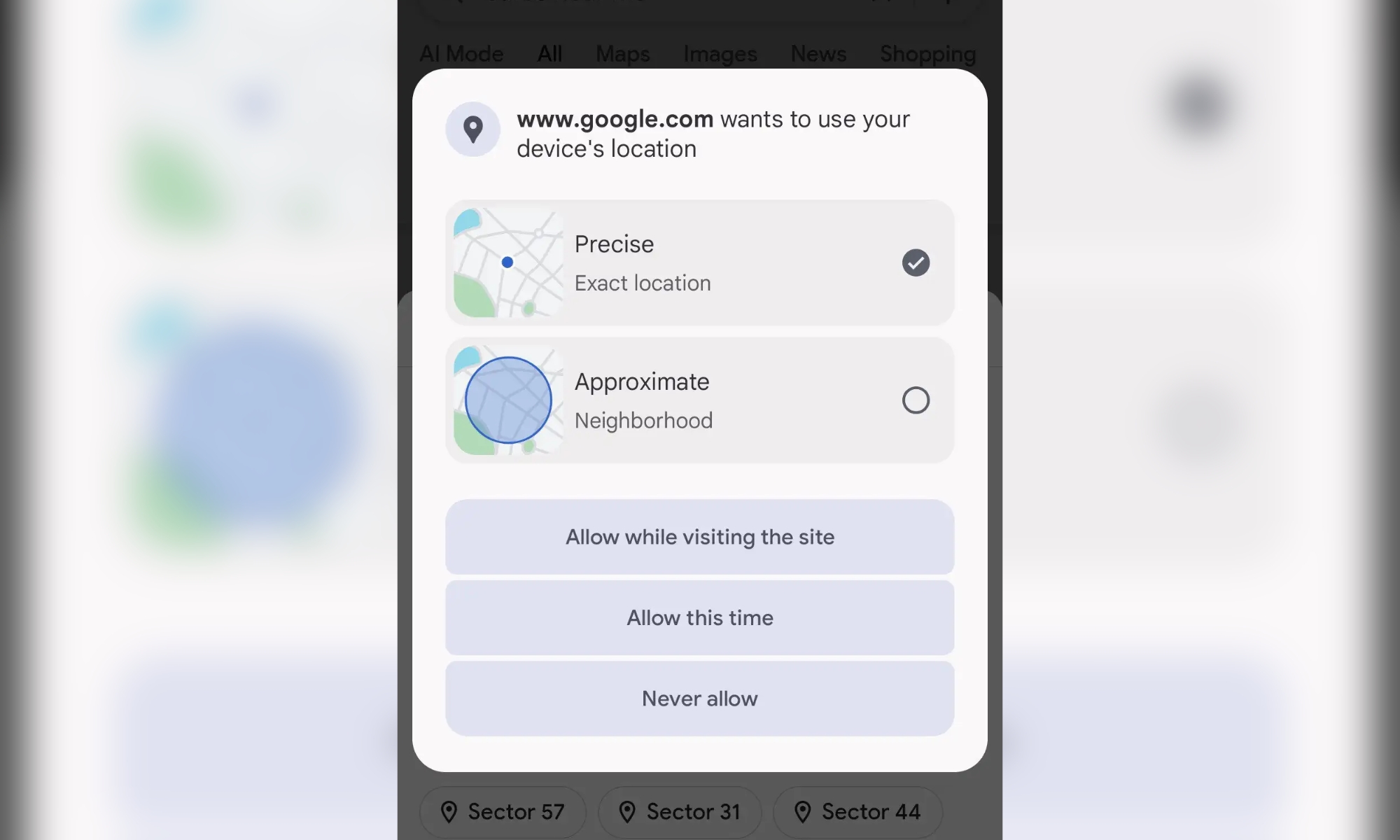 谷歌Chrome(Chrome)浏览器正在安卓(Android)版本142.0.7444.171中测试一项新的"近似位置"切换功能。该功能允许网站仅获取用户的近似位置信息,而非全球定位系统(GPS)提供的精确位置数据。