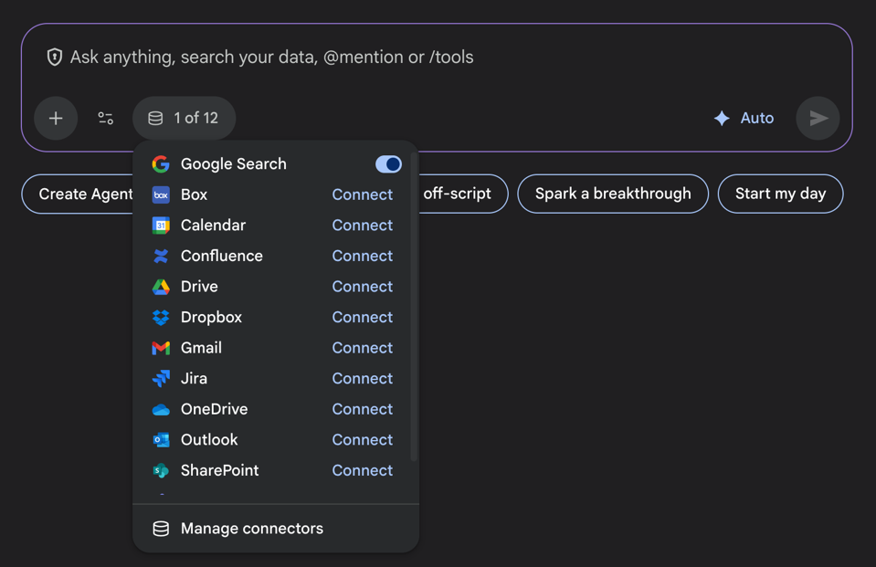 该平台于2025年10月推出,代表了谷歌云的战略转型。Gemini Enterprise被定位为"工作场所AI的新入口",可连接谷歌的多模态Gemini模型至组织现有的数据系统,包括谷歌工作空间(Google Workspace)、微软365(Microsoft 365)、Salesforce等。
