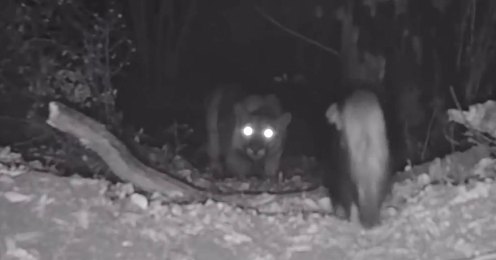 野生动物摄影师罗伯特·马丁内斯(Robert Martinez),网名"猫头鹰议会"(Parliament of Owls),在加利福尼亚州安吉利斯国家森林(Angeles National Forest)的监控相机中,捕捉到了一段臭鼬与美洲狮相遇的珍贵画面。