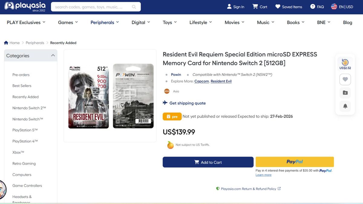 作为台湾存储制造商的产品,这款Powin配件目前主要通过Play Asia等进口网站销售,售价为139.99美元。对于生化危机系列收藏爱好者来说,除了这款存储卡,Switch 2 Pro手柄仍有库存,还可以期待即将推出的amiibo手办。