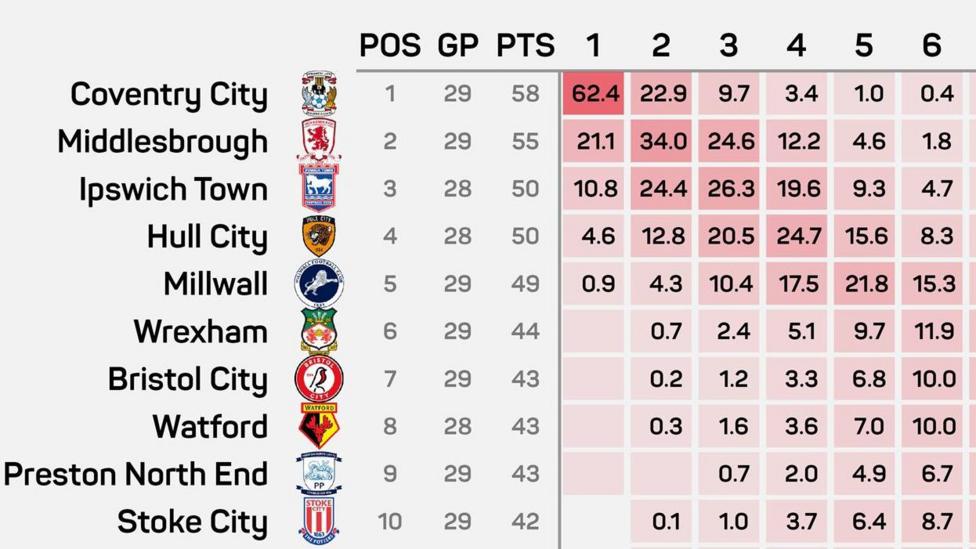 考文垂开局18场比赛取得13场胜利,创造多项新纪录。12月初领先第二名10分的优势,得益于此前12场比赛取得11胜的出色进球效率。这是英冠历史上从未有球队在赛季这个阶段领先如此之多。