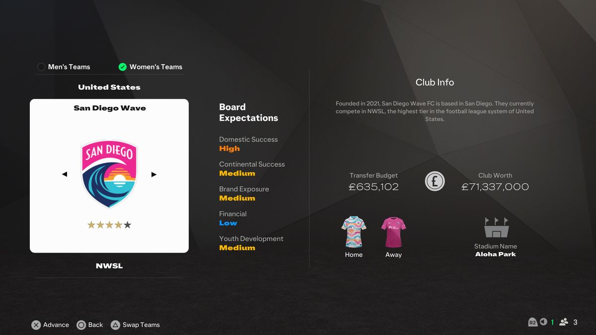 圣地亚哥浪潮队(San Diego Wave)不仅拥有精美球衣,还具备仅次于天使城(Angel City FC)的转会预算。球队已拥有5名80+能力值球员,包括加拿大门将凯伦·谢里丹(Kailen Sheridan)和澳大利亚中场艾米莉·范·埃格蒙德(Emily van Egmond)。
