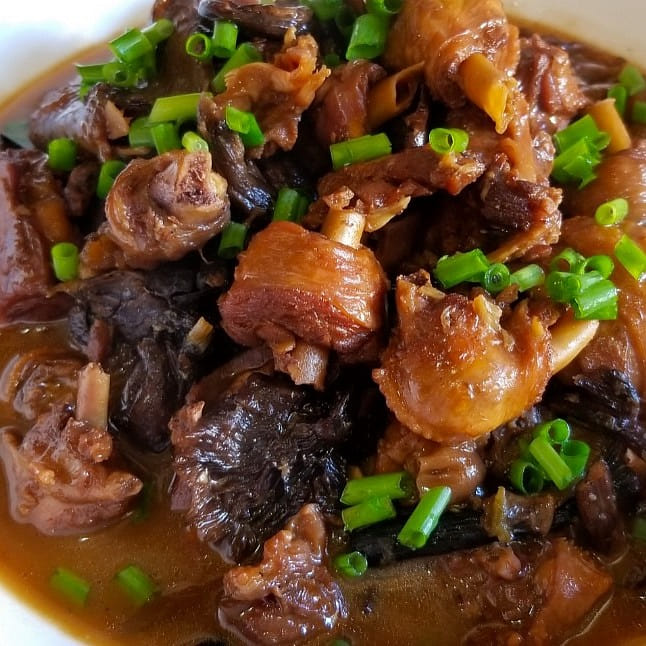 小鸡炖蘑菇是东北的传统名菜,用土鸡和干榛蘑等优质食材炖煮而成。这道菜的香气四溢,汤汁浓郁,鸡肉鲜嫩多汁,蘑菇香气扑鼻,是东北家宴中最高规格的菜品之一。