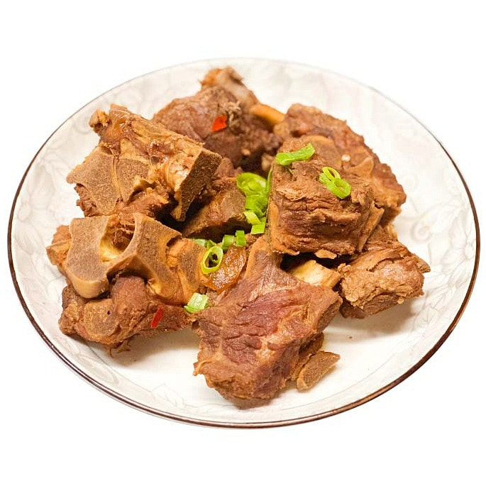 酱大骨是东北的特色美食,用棒骨、扇骨等加入东北特有的黄豆酱以及其他调味品炖卤,做好之后酱香四溢、让人垂涎。与排骨相比,啃大骨最大的乐趣就在于可以手口并用,两只手紧紧地握着大骨棒,吃肉、啃筋、吸髓一气呵成,真是过瘾。