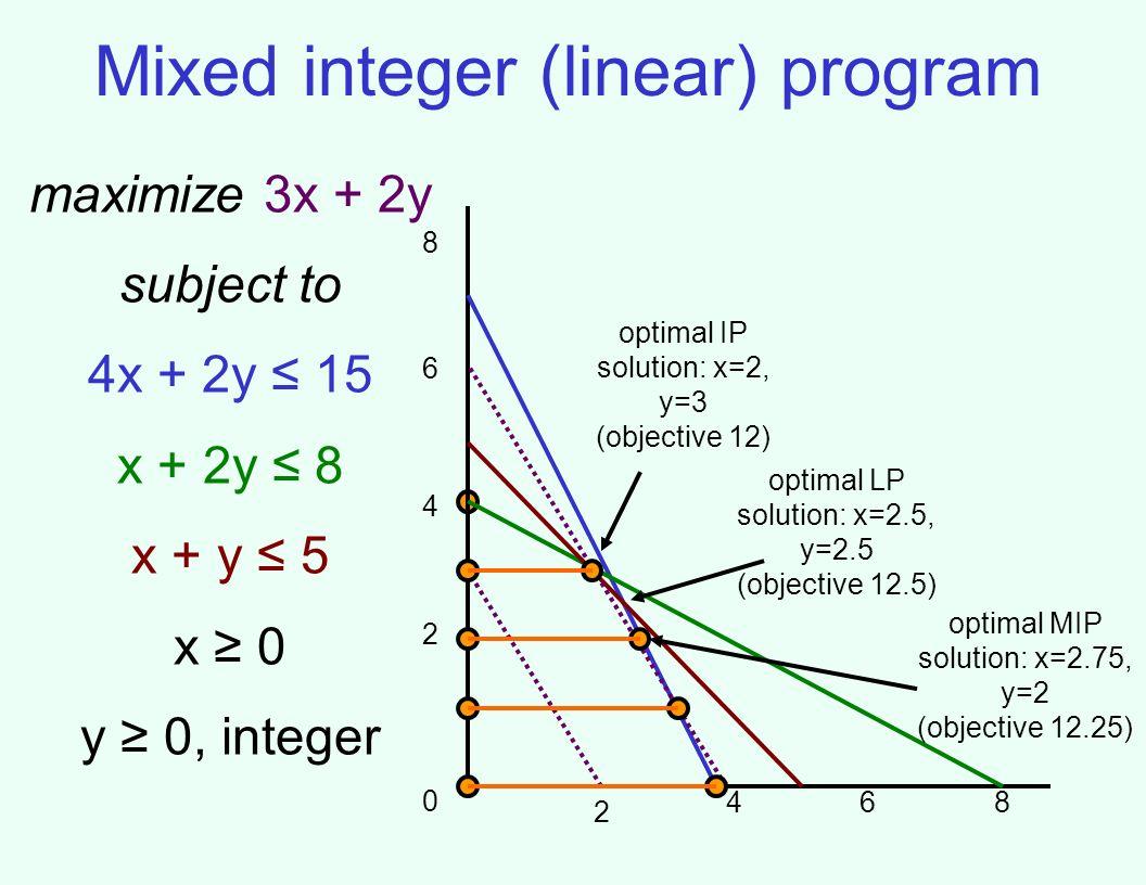 - 是运筹学中的数学工具,用于求解目标函数和约束条件包含整数变量和连续变量的优化问题。