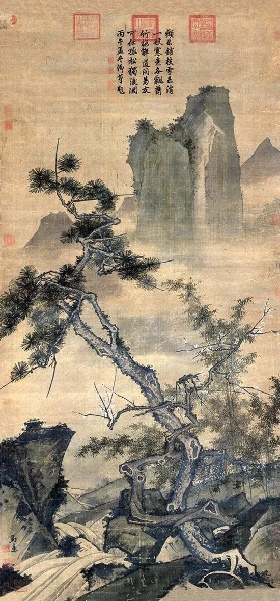 “岁寒三友”一词最早见于南宋遗民林景熙的《五云梅舍记》。1279年南宋灭亡后,林景熙拒绝仕元,隐居家乡平阳(今浙江苍南),在庭院植梅百株,与松竹相伴,写下“与乔松修篁为岁寒三友”。这一组合不仅是自然景观的描绘,更承载着亡国之痛与士人风骨。林景熙曾冒死收敛宋皇室遗骨,其诗《冬青》中“隔江风雨晴影空,五折深山护微雪”暗喻对故国的忠贞。