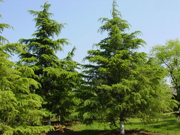 银灰色针叶似覆薄雪,金字塔形树冠层叠舒展。孤植时高达30米的巍峨树形与建筑形成强烈视觉对比,冬季银装素裹更显圣洁,印度喜马拉雅雪松原生种尤为珍贵