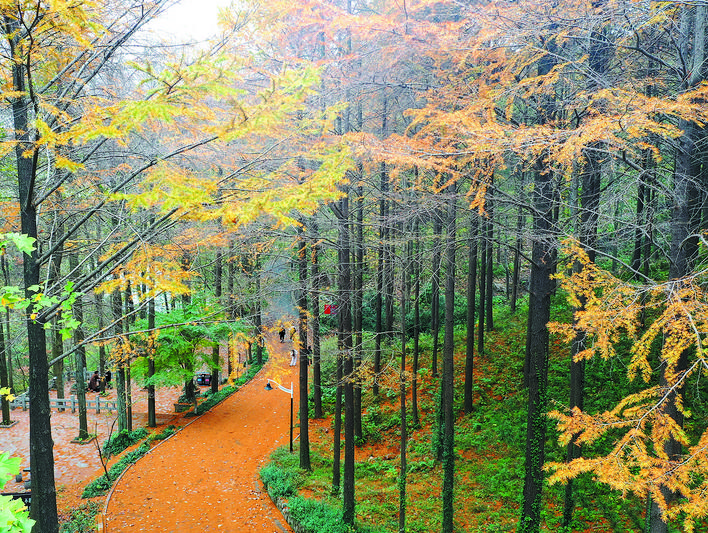 世界五大公园树种之一,秋季针叶转为炫目金色,与银杏并列秋景双绝。浙江天目山古树林立,深秋时节满山金霞映照溪涧,被誉为"江南喀纳斯"