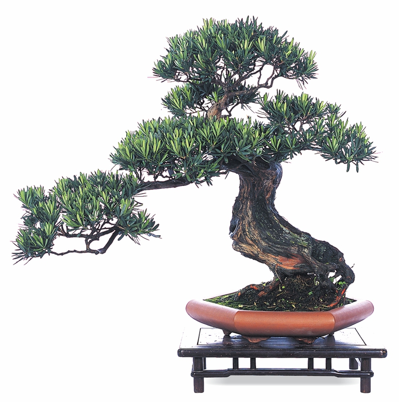五针松变种,针叶短簇呈黄金弧线,冬季叶尖金黄如缀繁星。通过"金属丝蟠扎"技法可塑造成层云状盆景,京都龙安寺经典案例展现侘寂美学