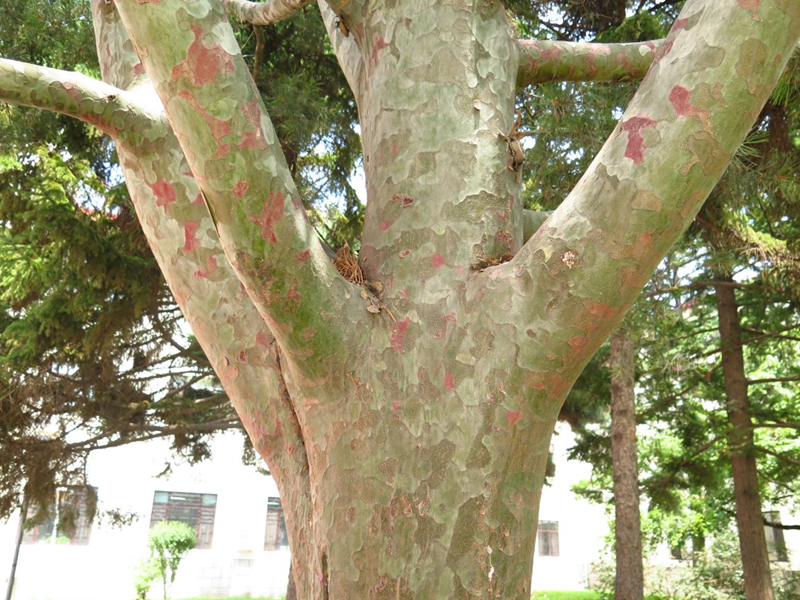 树皮随年龄增长蜕变为白褐斑驳的抽象纹理,如天然水墨画。北京故宫、颐和园多用其营造庄严意境,三百年古树枝干扭曲似青铜器蟠螭纹,堪称活文物