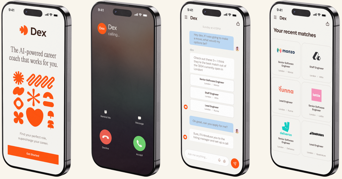 Dex将自己定位为"AI语音人才代理",通过AI技术为求职者和企业提供全流程服务。平台首先通过对话了解候选人的经验、技能和职业抱负,随后可以帮助规划职业发展、推荐相关机会、准备面试,甚至协助薪资谈判。
